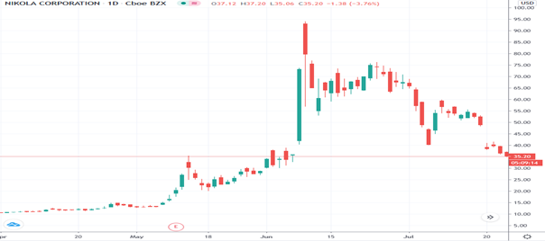 Většina lidí přistupuje ke společnosti Nikola jako k následníkovi neuvěřitelného historického růstu a dosažení statusu největší automobilky na světě díky tržní kapitalizaci Tesly. Nikola se stala jednou ze společností s nejvyšším růstem na světě hned po svém uvedení trh. Z hodnoty na úrovni 11,50 dolarů za akcii v dubnu krátce vzrostla nad 90 dolarů za akcii, čímž zaznamenala růst více než 680 % a následně uzavřela na úrovni 73,27 dolarů za akcii