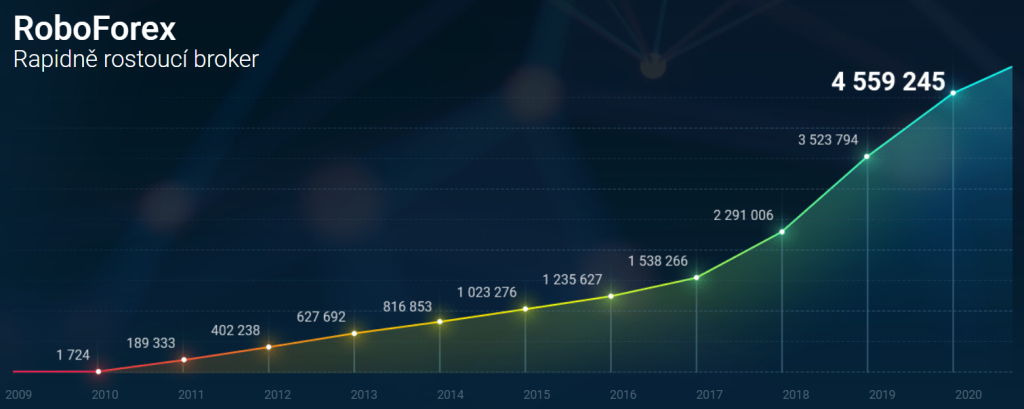 Dnes je Roboforex na trhu více než 13 let. Za tu dobu se rozrostl až na 5 milionů klientů po celém světě. Díky tomu patří mezi jeden z největších brokerů na světě, své služby nabízí na klientům na všech kontinentech.