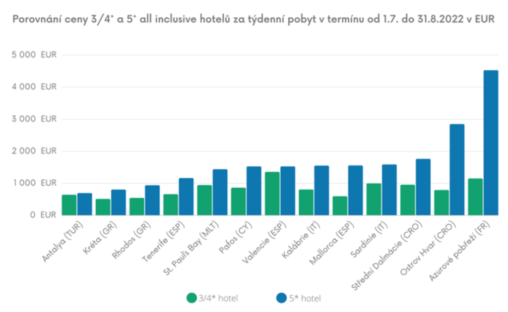 Překvapením mohou být ceny letních dovolených v Chorvatsku, které mělo po dlouhou dobu nálepku laciné země, avšak atraktivní země. Tento obrázek se ale již nějakou dobu mění a Chorvatsko se stává standardní turistickou destinací, a to i z cenového hlediska. Naopak k nejdražším destinacím pro letí dovolenou patří Azurové pobřeží ve Francii. Zde se to dá vysvětlit mimo jiné tím, že tamní hoteliéři cílí na jinak ekonomicky situovanou klientelu než tradiční rezorty, jejichž cílem je hlavně střední třída.