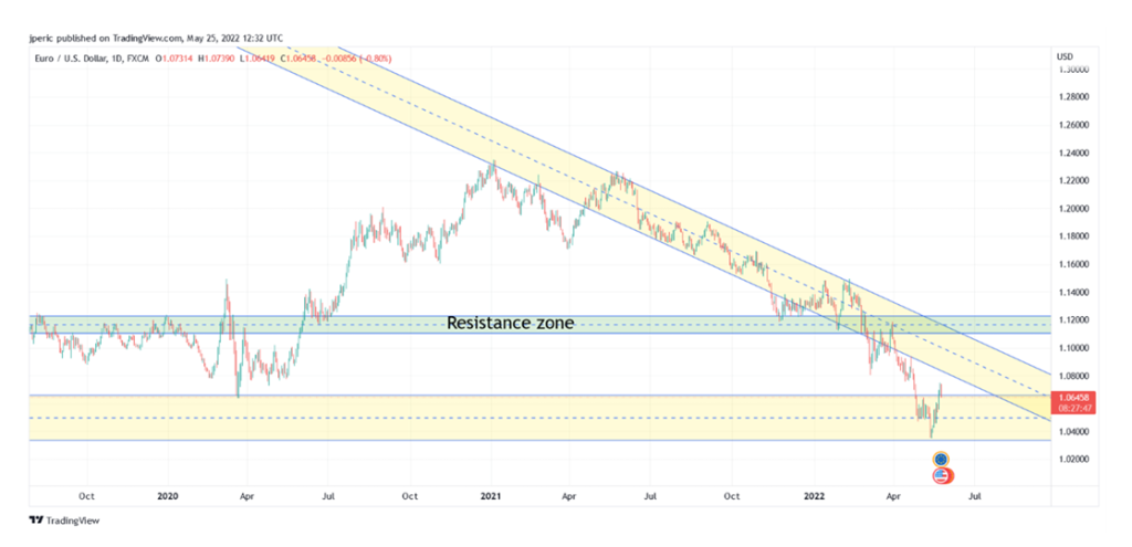 Při jakémkoli signálu nebo vyšší pravděpodobnosti, že by ECB mohla zvýšit úrokovou sazbu, bychom pravděpodobně mohli vidět růst kurzu eura nejen do oblasti zóny rezistence, ale případně i k rekordním úrovním 1,20-1,22 z roku 2021.