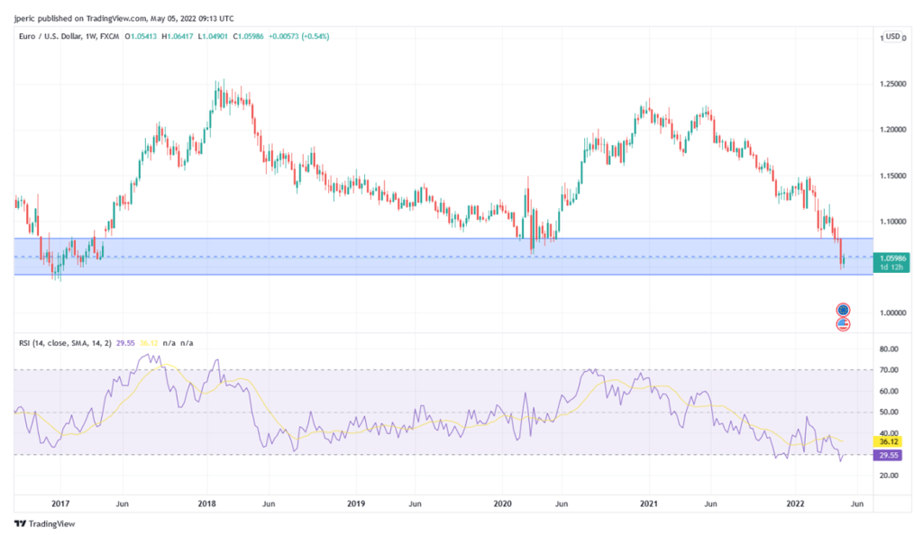 Obrázek 3. Výkonnost EUR/USD za posledních 5 let (zdroj: tradingview.com)