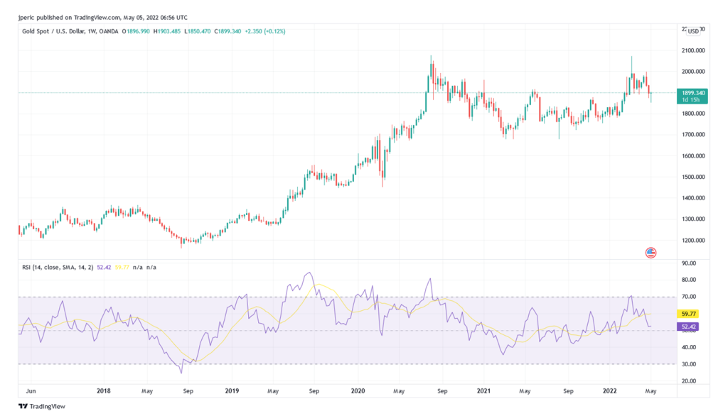 Obrázek 1. Výkonnost XAUUSD za posledních pět let (zdroj: tradingview.com)