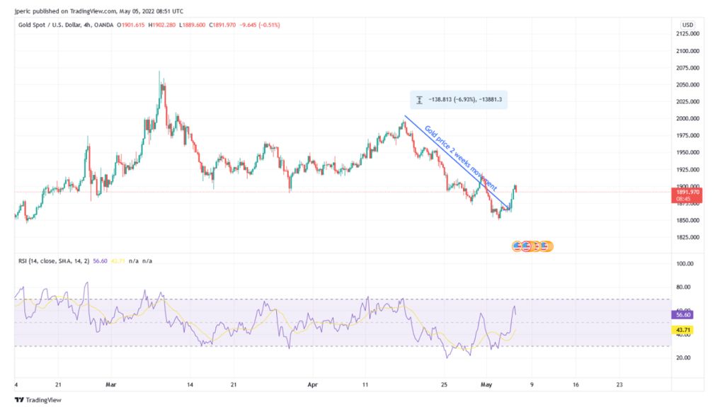Obrázek 2. Výkonnost XAU/USD za poslední 2 měsíce (zdroj: tradingview.com)