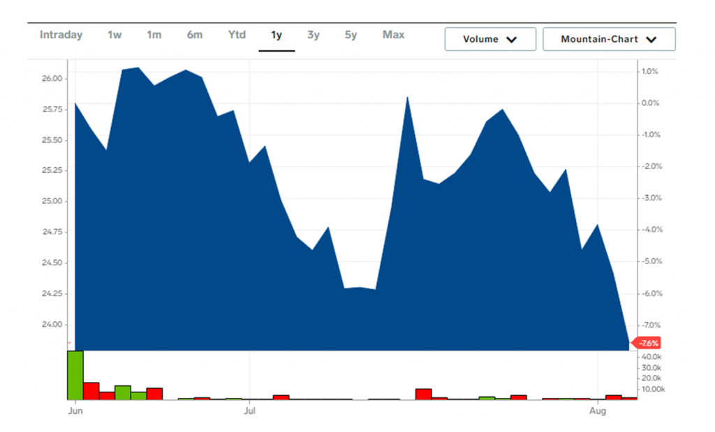 Společnost About You vstoupila na burzu ve Frankfurtu nad Mohanem již v polovině června. Emisní cena za akcii byla stanovena na 23 EUR za kus, přičemž v průběhu dne vzrostla cena akcií až o 17 procent.* V prvních dnech obchodování překročila hranici 26 EUR za akcii. * Od té doby však uběhlo už několik týdnů a zdá se, že hodnotě společnosti dochází na burze dech.