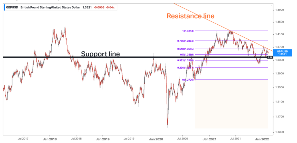 Obrázek 2: GBP/USD, pětiletá výkonnost, denně (Zdroj: koyfin.com)