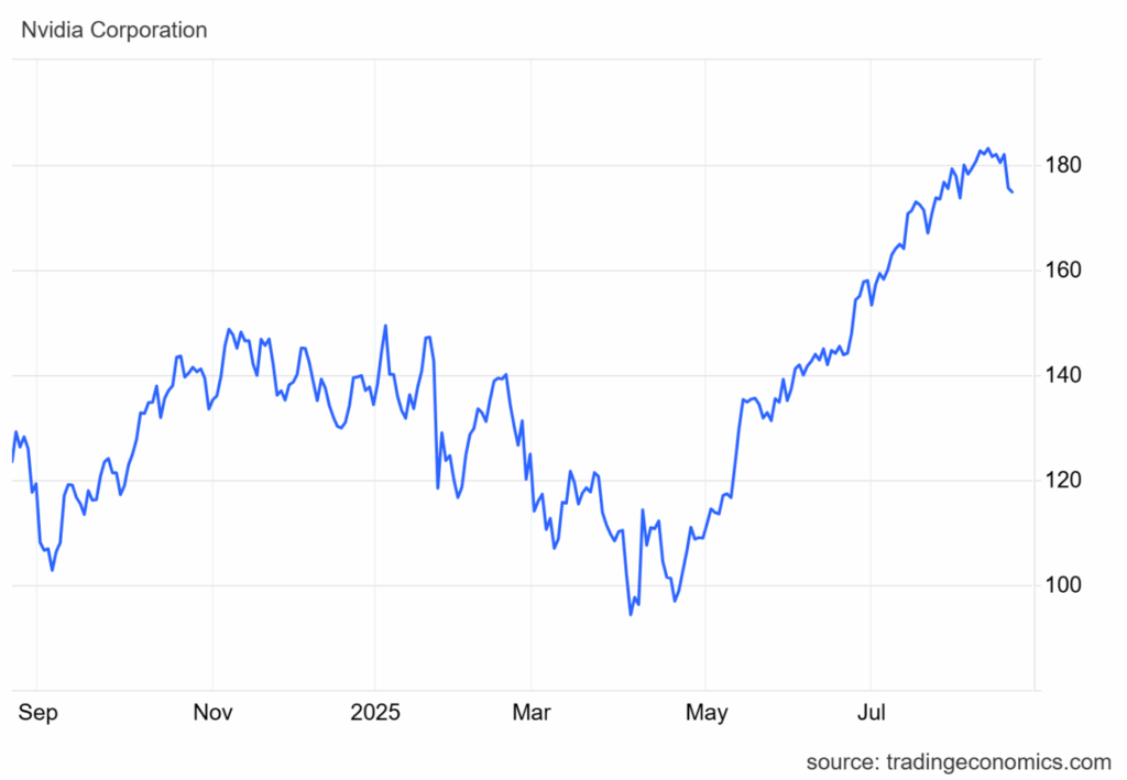 Nvidia současně vyhodnocuje více produktů, které by mohly rozšířit její portfolio a posílit přítomnost v klíčových regionech. Společnost zdůraznila, že všechny její produkty jsou určeny výlučně pro komerční účely a mají souhlas regulačních orgánů. Po zprávách o čipu pro Čínu akcie společnosti krátkodobě klesly o 3,5 % během obchodního dne 19. srpna 2025*, což však ministr obchodu Spojených států Howard Lutnick komentoval podporou generálnímu řediteli firmy Jensenovi Huangovi. V souvislosti s americko-čínskou obchodní dohodou Nvidia a AMD odvedou 15 % tržeb z prodeje v Číně výměnou za pokračování exportu, přičemž snížený výkon Blackwellu může být záminkou pro uvolnění regulačních omezení.