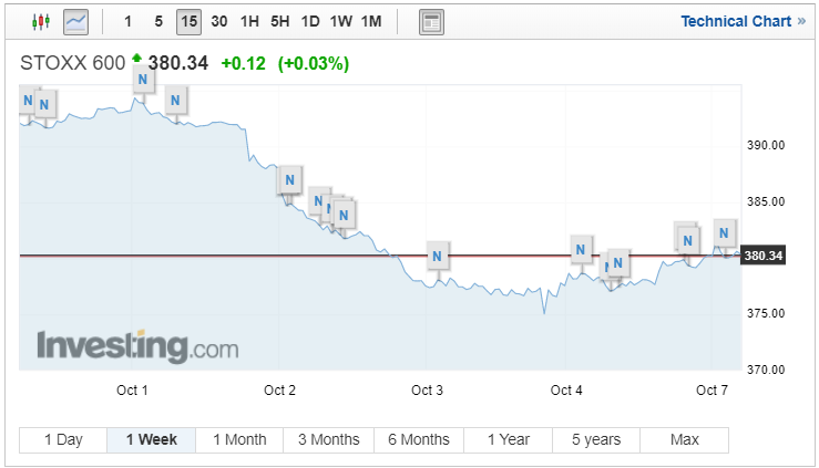 Vývoj evropských akcií v týdenním horizontu vypadal podobně jako na amerických akciových trzích. V konečném důsledku si však odepsali až okolo tří procent svojí hodnoty. Regionální index STOXX Europe 600 ztratil 2,95 procenta hodnoty a obchodní týden zakončil na úrovni kolem 380 bodů.