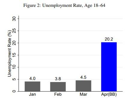 Ve skutečnosti nová studie amerického trhu nezaměstnanosti naznačuje, že předpokládaná výška nezaměstnanosti by mohla v dubnu dosáhnout 20%. Nejvíce znepokojující je však to, že za poslední čtyři týdny požádalo o dávky v nezaměstnanosti více Američanů, než bylo pracovních míst vytvořených za poslední desetiletí od konce Velké recese.