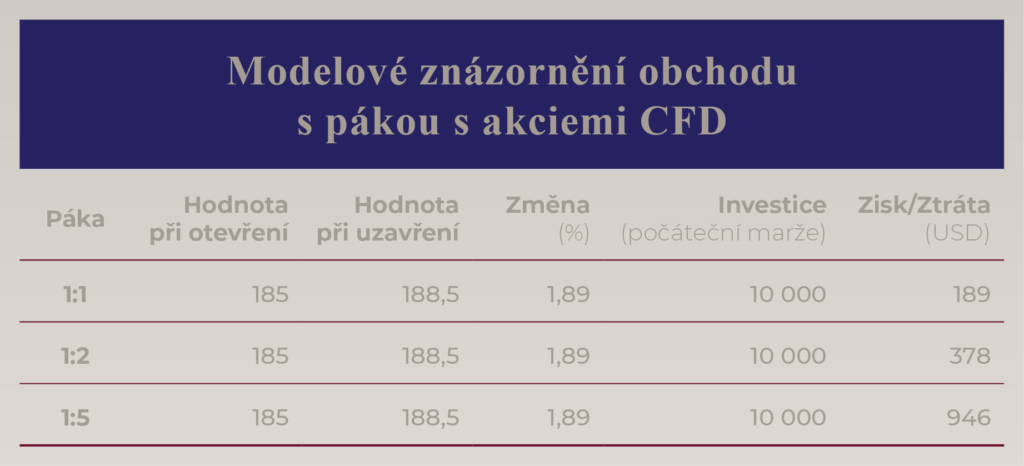 Aby si uživatel dokázal lépe představit pákový obchod, ukážeme si jej na rozšířeném investičním nástroji nazývaném „rozdílová smlouva“ (zkratka CFD – z angličtiny „contract for difference“).