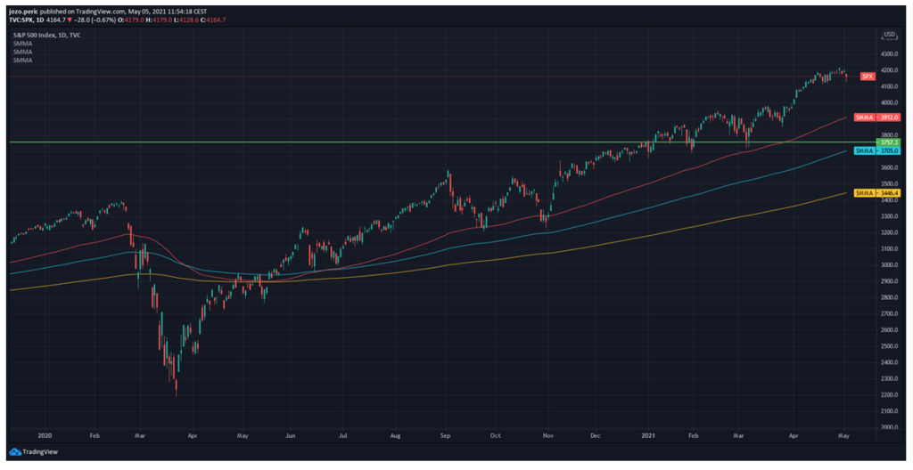 Obrázek 1: Vývoj indexu S&P 500 za 2020/2021 (tradingview.com)